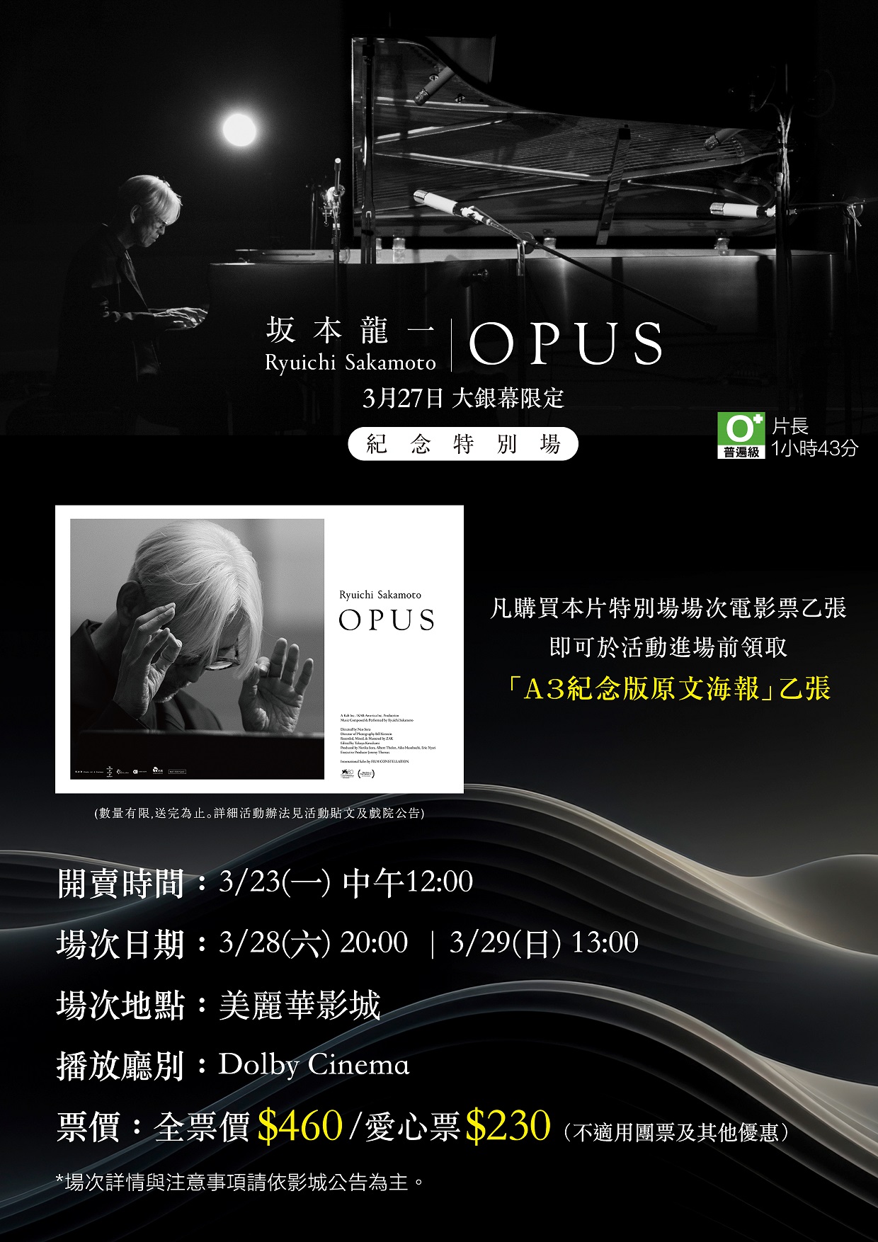 以優美旋律為全球樂迷帶來感動與慰藉的音樂大師坂本龍一,他竭盡全力演奏出他音樂生涯的20首經典曲目。悠揚的琴音在舞台與燈光之間流淌,時而慑人心神,時而令人屏息。坂本龍一的最後一場演奏,也是他以音樂獻給全世界的美麗問候。