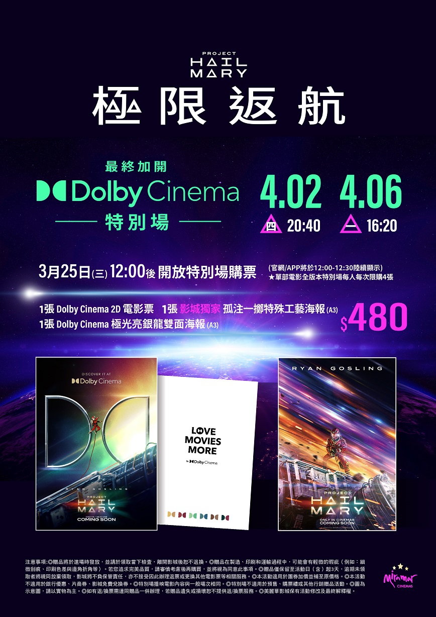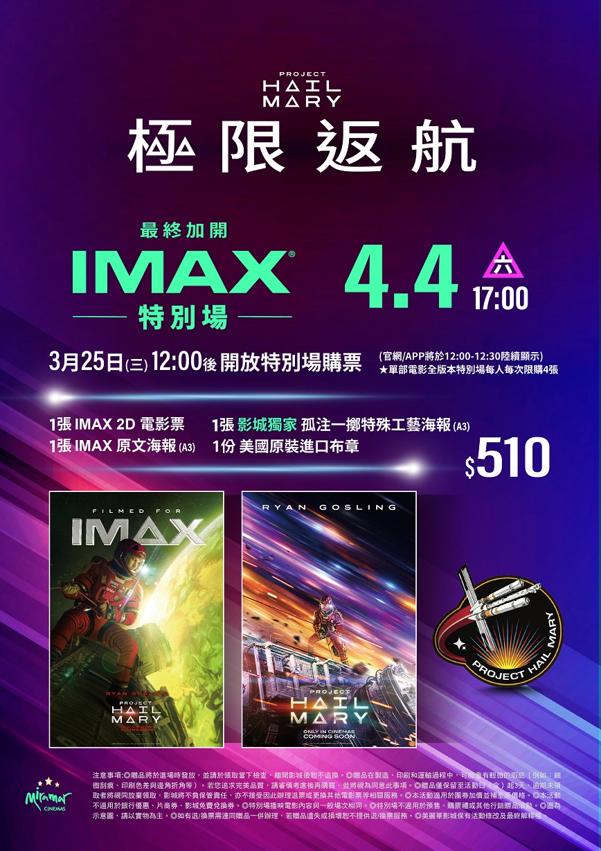 改編《絕地救援》暢銷作家同名小說,《蜘蛛人:新宇宙》系列菲爾洛德與克里斯多福米勒執導,萊恩葛斯林主演。 科學老師萊倫格雷斯在一艘距離地球好幾光年的太空船上醒來,卻對自己的身分和來到這裡的原因一無所知。隨著記憶逐漸恢復,他開始揭開任務的真相,解開一種神祕物質導致太陽衰亡的謎團。他必須運用自己的科學知識與創意想法,拯救地球的滅絕危機……但一位意料之外的訪客,讓他或許不用獨自奮鬥。